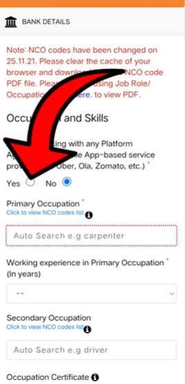 - अगर आप Flipkart, Zomato या कोई भी डिलीवरी पार्टनर है तो भी आप Yes चुने और अपने job के बारे में भी जानकारी दीजिये।
