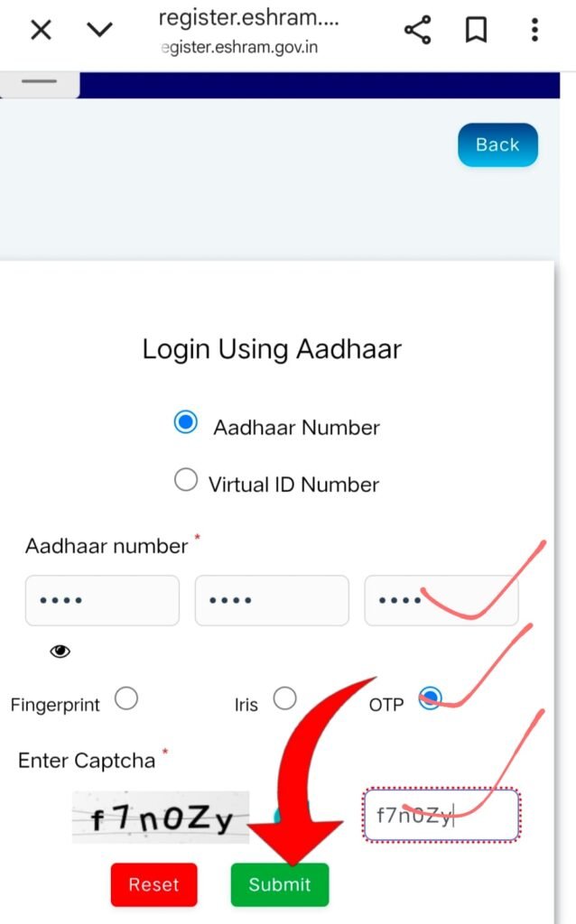 - मोबाइल नंबर पर आये हुए OTP और दिए गए कैप्चा को भरकर Submit करें।