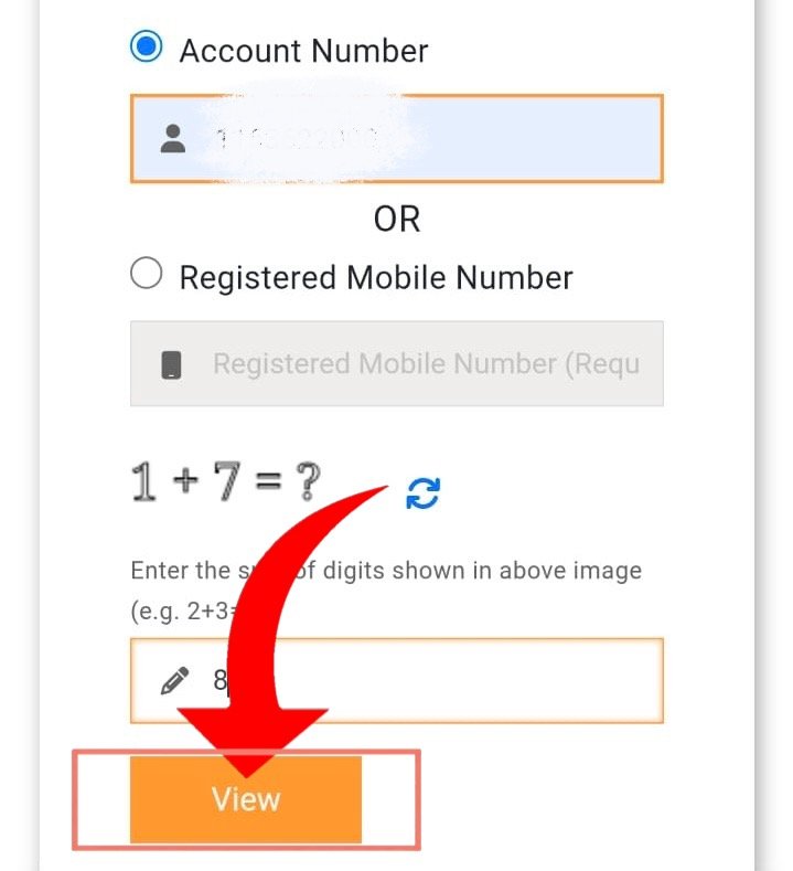 - खुलकर आए पेज पर अपना जिला, बिजली बिल का अकाउंट नंबर या फिर रजिस्टर्ड मोबाइल नंबर डालकर, कैप्चा में पूछे गए सवाल को भरें और View के ऑप्शन पर क्लिक कर दें।