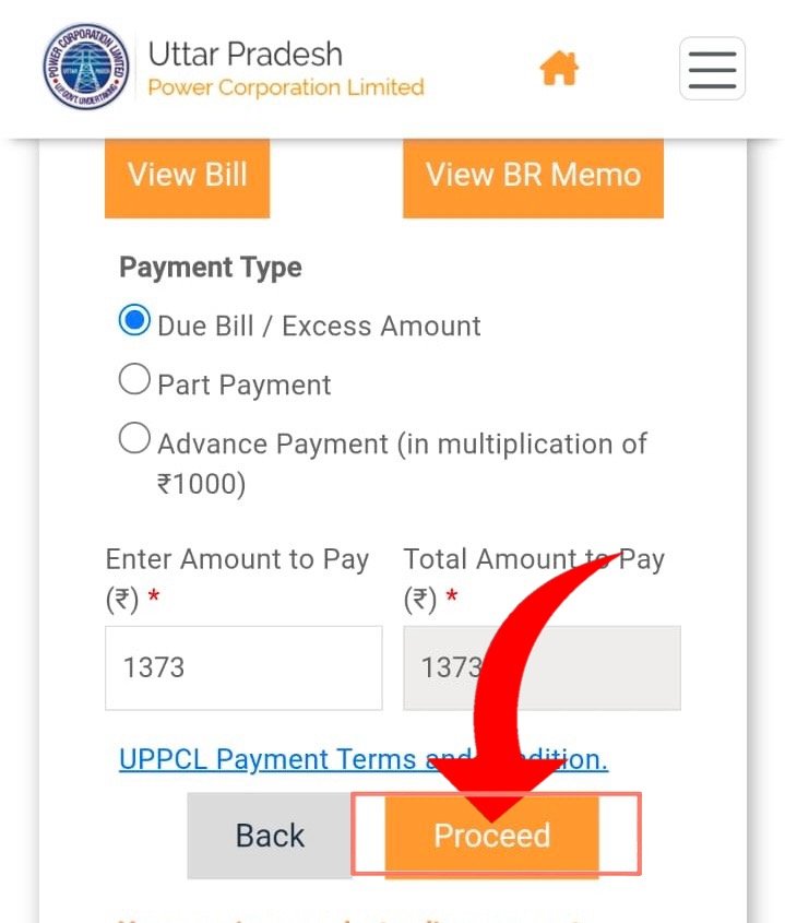 Note: अगर आप पूरा UPPCL Bijli Bill Online Pay करना चाहते है तो Payment Type के सेक्शन में Due Bill का ऑप्शन चुने, आधा बिल पेमेंट करने के लिए Part Payment और एडवांस बिल पाय करने के लिए Advance Payment के ऑप्शन को चुने।