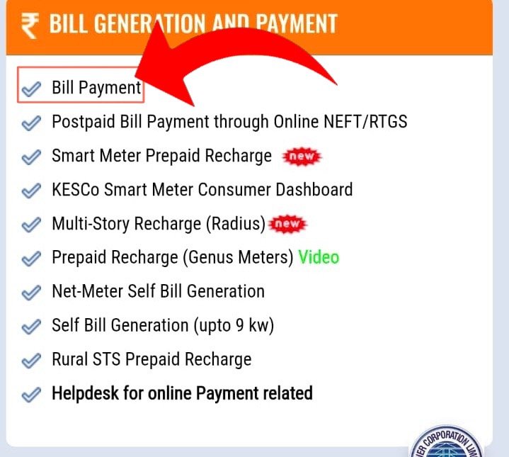 - अब Bill Generation and Payment के सेक्शन में दिख रहे Bill Payment के ऑप्शन पर क्लिक करें।