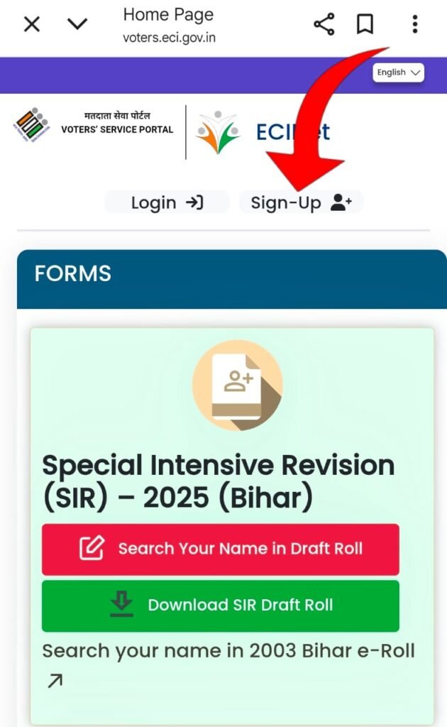 - अगर आप इस वेबसाइट को पहली बार इस्तेमाल कर रहे हैं ऊपर दिख रहे Sign up के ऑप्शन पर क्लिक करें।