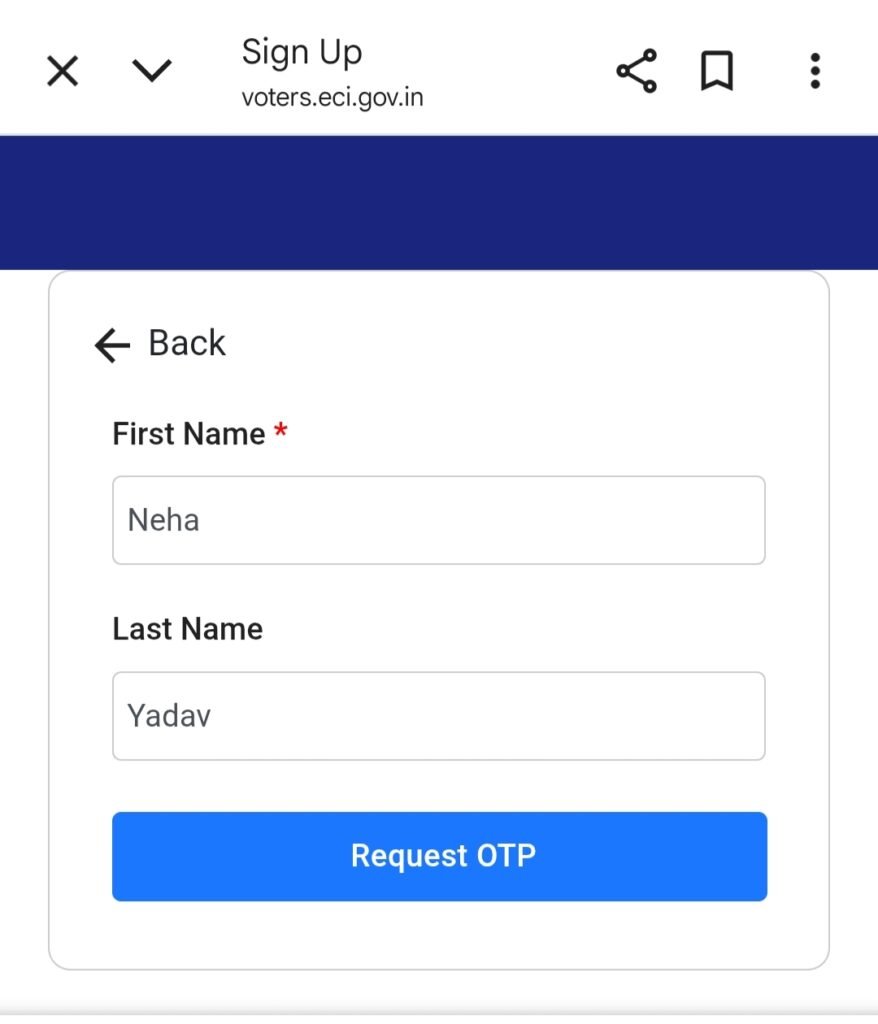 - खुलकर आए नए पेज पर अपना फर्स्ट नाम और लास्ट नाम डालकर Request Otp पर क्लिक करें।